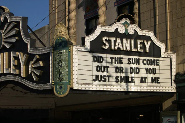 A classic pick-up line addressed to an entire rust-belt city in the Mohawk River Valley via its 1927 movie palace marquee.